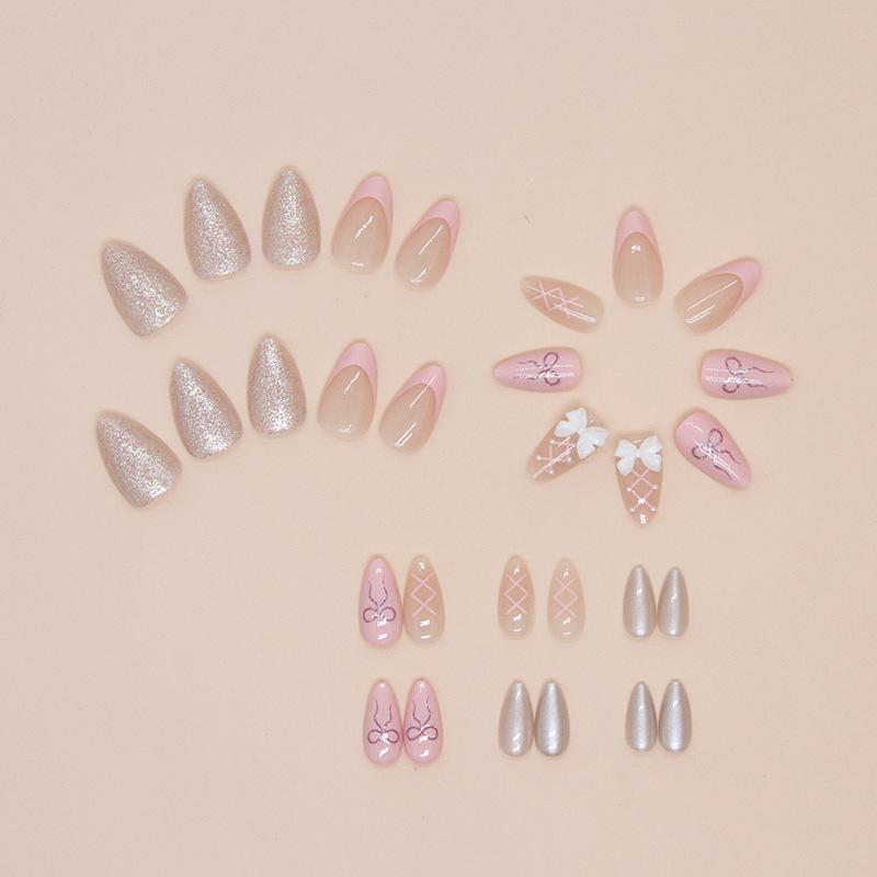 | Name | 24pcs Middle Almond Press-On Nails, Pink French Style with White Tips&Bow Kn |