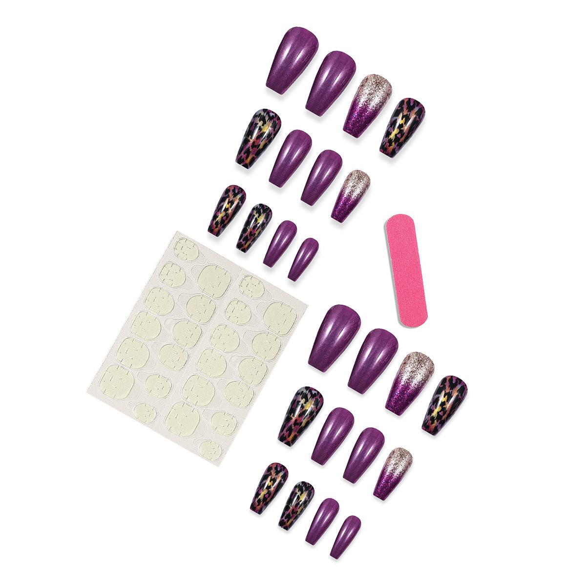 | Name | 24pcs Long Coffin Purple Leopard Glitter Press-On Nail Set |